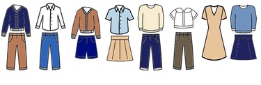 Afin de favoriser la cohésion et l'ambiance de travail parmi les élèves, il est demandé aux familles d'habiller leurs enfants de vêtements unis, simples et sobres, dans les couleurs suivantes : bleu marine, bleu clair (discret), blanc, brun, ou beige